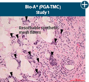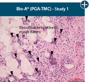 At 1 month, a robust foreign body response was observed with resorbable synthetics in preclinical studies